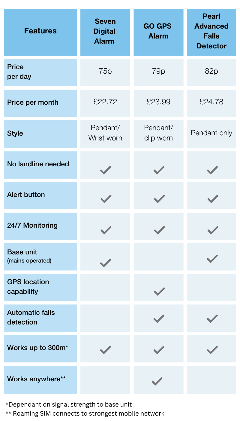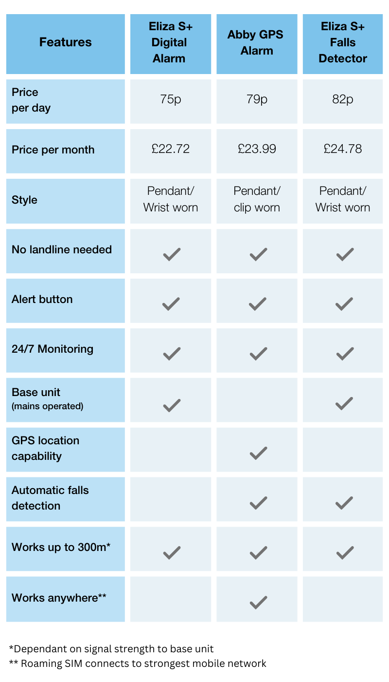 Feel safer at home and outdoors with our range of personal alarms and support services. Each option is designed to help you stay independent and get help quickly whenever you need it.