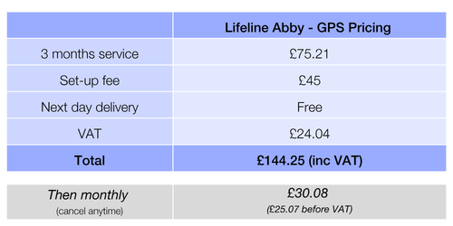 Our Progress Lifeline GPS falls package cost just £25.07 + VAT per month (with a £45 + VAT set up fee).